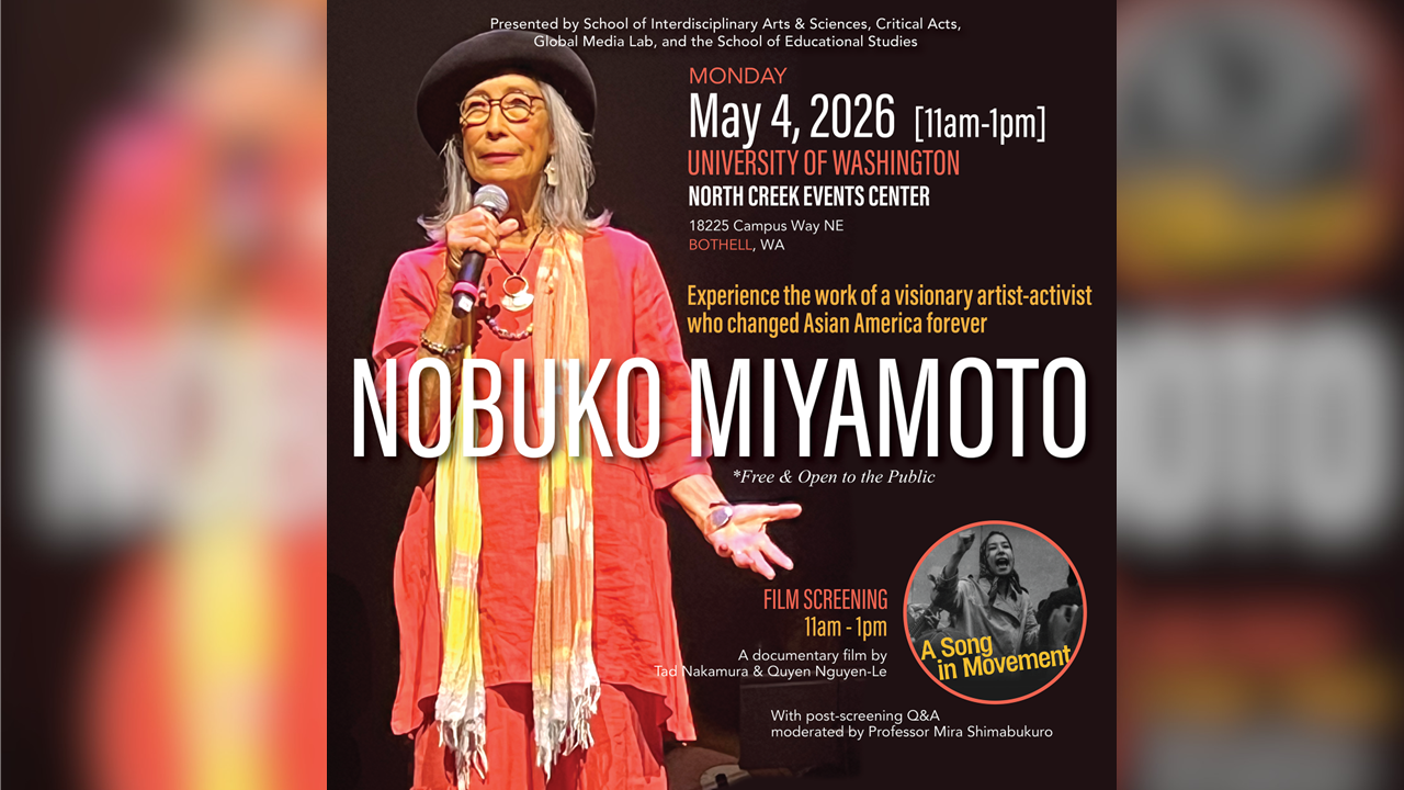 Join Anida Yoeu Ali, senior-artist-in-residence in the School of IAS, and her Global Media Lab students to experience the work of a visionary artist-activist who changed Asian America forever. Nobuko Miyamoto will attend the screening and will participate in a post-screening Q&A moderated by Dr. Mira Shimabukuro, teaching professor in IAS.