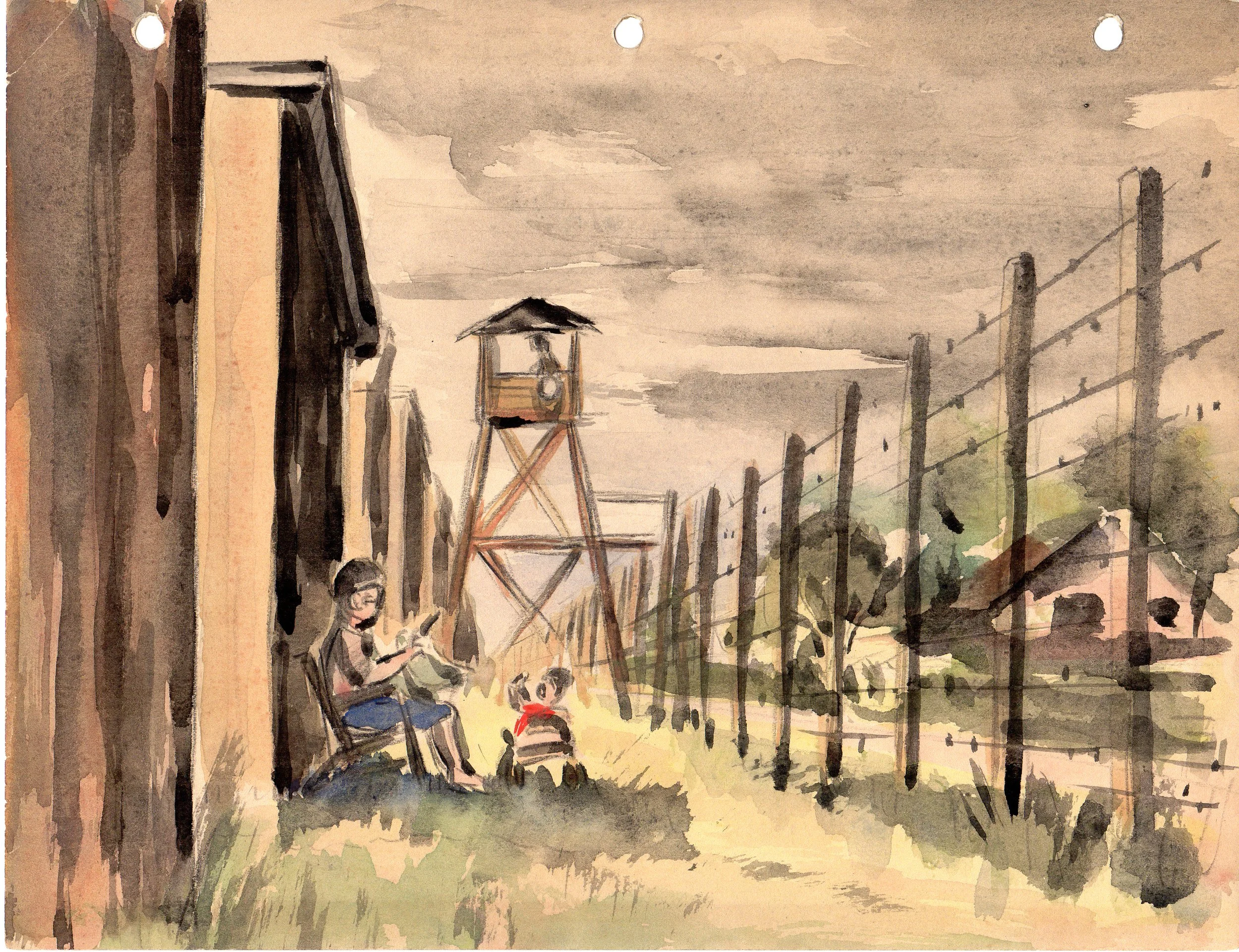 Image: Kenjiro Nomura. Camp Harmony/Puyallup, 1942. Watercolor on paper. Wing Luke Museum Collection.